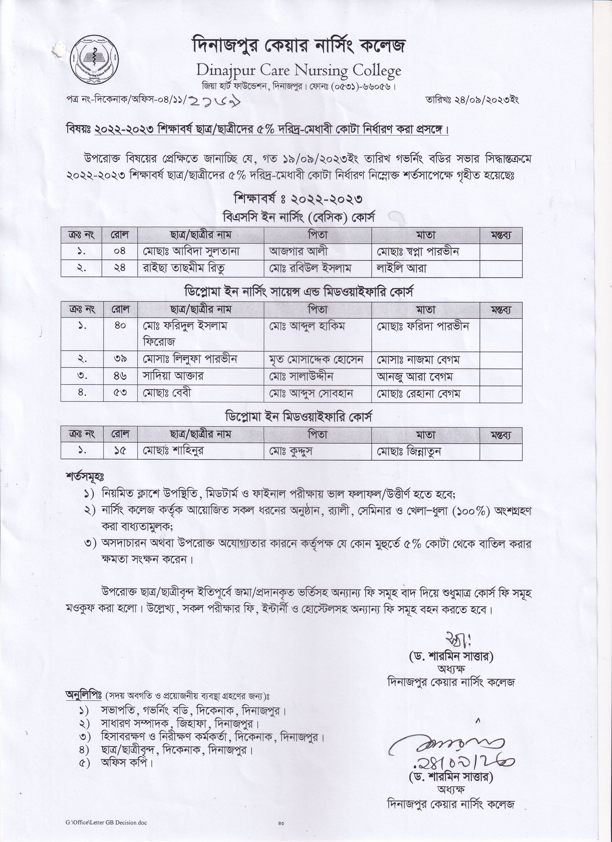 দিনাজপুর কেয়ার নার্সিং কলেজে আপনাকে স্বাগতম, অত্র নার্সিং কলেজ গণপ্রজাতন্ত্রী বাংলাদেশ সরকারের স্বাস্থ্য ও পরিবার কল্যাণ মন্ত্রণালয় অনুমোদিত, বাংলাদেশ নার্সিং ও মিডওয়াইফারি কাউন্সিল স্বীকৃত এবং রাজশাহী মেডিকেল বিশ্ববিদ্যালয় অধিভুক্ত